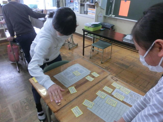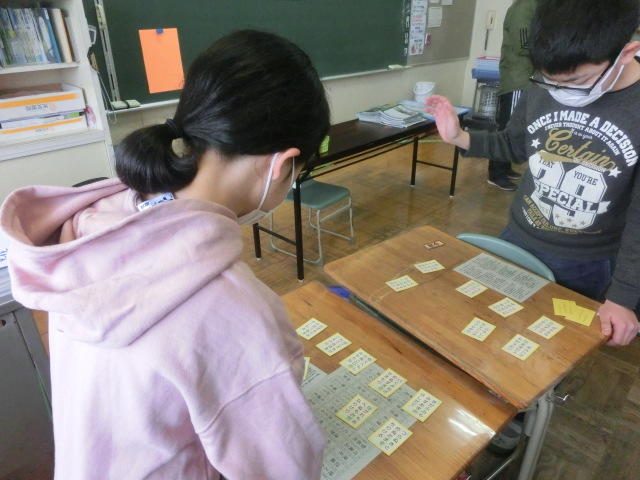 5年生 国語の授業。百人一首です。