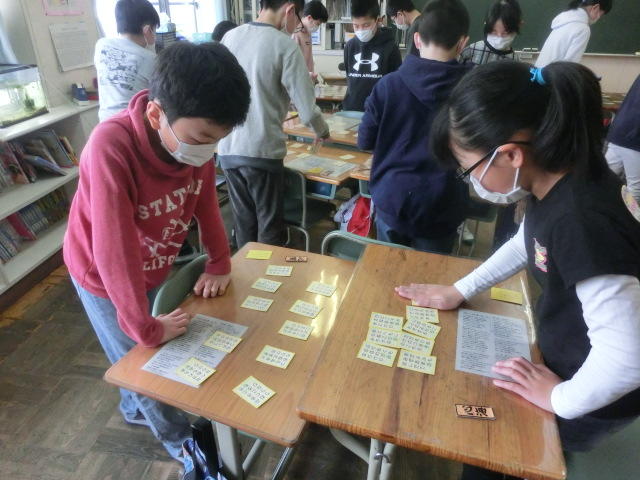 2020年2月14日 14時20分2月14日(金)5年生、国語の授業の1コマです。百人一首をペアになり実施しました。今から百人一首に親しんで、その句が頭に入っていると今後、中学校・高校での学習に必ずや役に立つことでしょう。