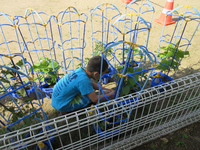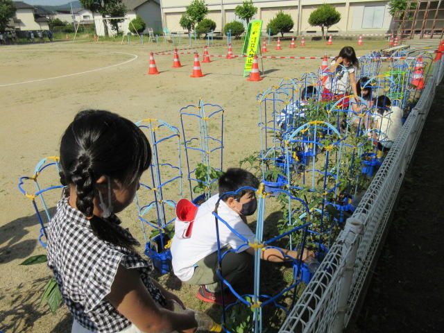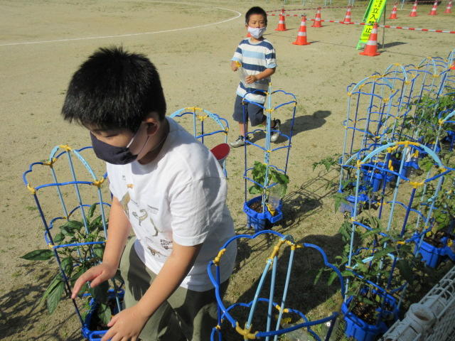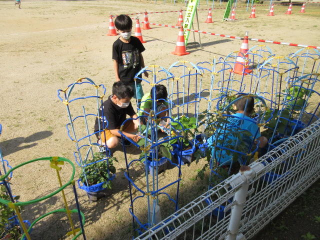 2020年6月9日 08時59分朝登校したら、まず、低学年が行うのは、育てている植物の水やりです。鉢の本葉が日に日に大きくなっていく様は、まるで子ども達のようです。日々どんどん大きくなっています。