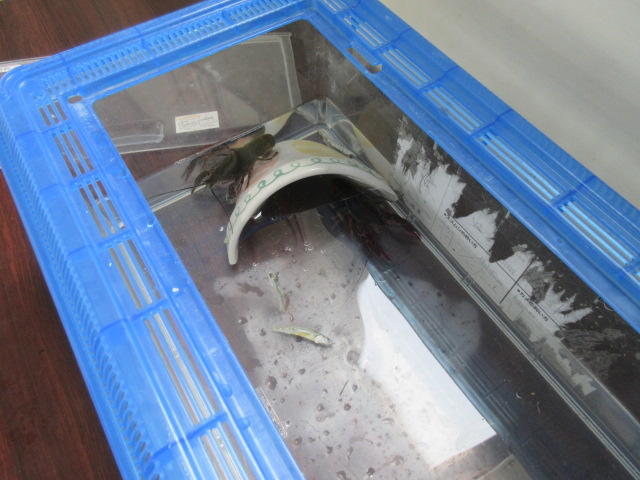 2020年6月19日 12時50分2年生の教室前の水槽には、昨日はザリガニがたくさんいました。今日行ってみると・・・・。昨日とは違っていろいろな種類の生き物がいました。ダンゴムシ、オタマジャクシそしてザリガニです。生活科の学習の観察で使用します。