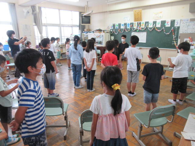 2020年7月17日 11時57分7月17日(金)の各学年の授業の様子です。曇天で気温も低く過ごしやすい日でした。今日は金曜日、週末ということで心なしか子ども達もうれしそうです。ALTのユウマ先生がアメリカに帰ることになり、今日が最後のユウマ先生との英語の授業でした。各学年度お別れの会が開かれました。