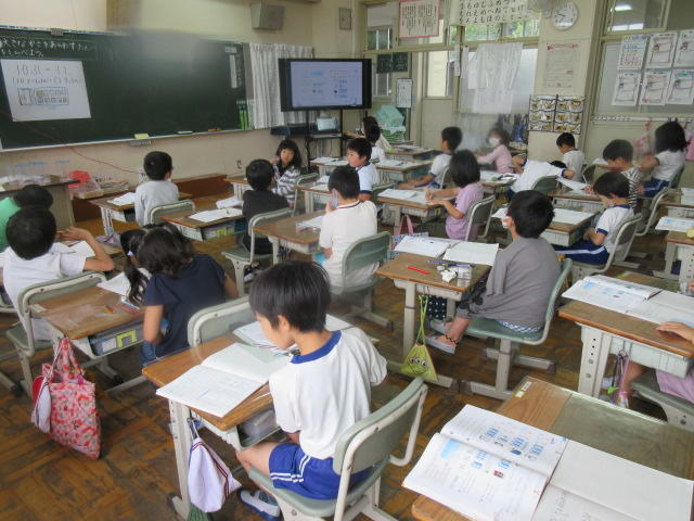 7月17日(金)の各学年の授業の様子です。曇天で気温も低く過ごしやすい日でした。今日は金曜日、週末ということで心なしか子ども達もうれしそうです。ALTのユウマ先生がアメリカに帰ることになり、今日が最後のユウマ先生との英語の授業でした。各学年度お別れの会が開かれました。
