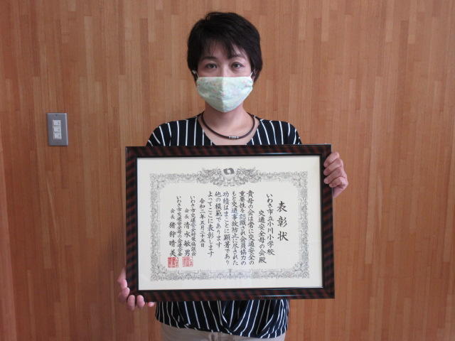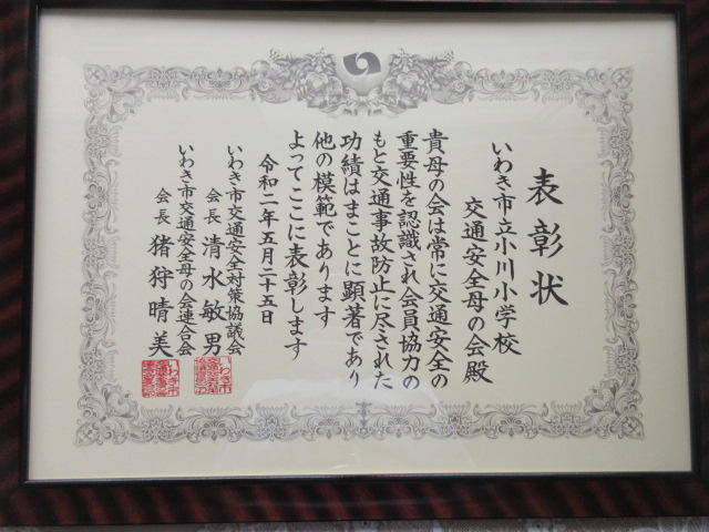 2020年7月29日 15時34分小川小学校交通安全母の会がその功績が顕著であるとして表彰をされました。本日、市文化センターで表彰式があり、交通安全母の会長様が式に臨み、授与されてきました。日頃の活動が実を結びこのような表彰を受けたことは、誠に素晴らしいことであります。おめでとうございます。