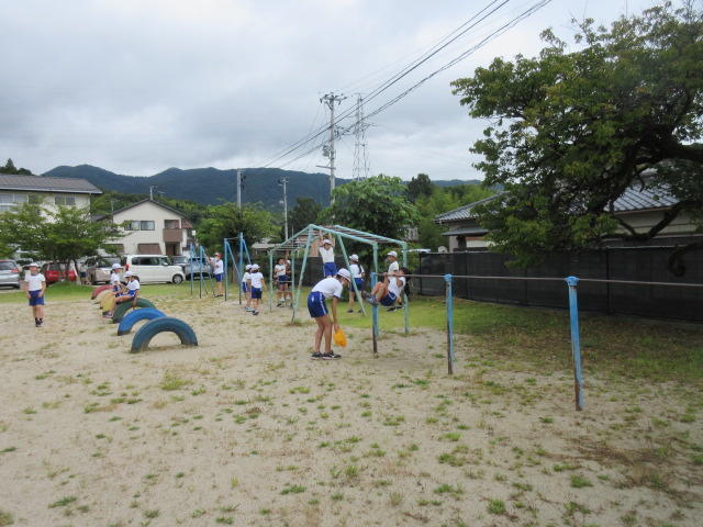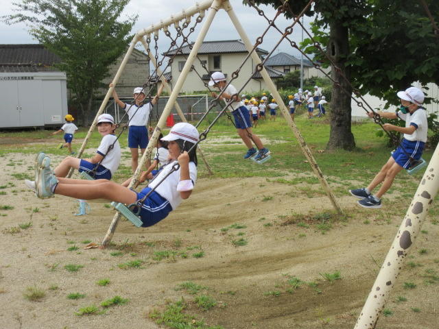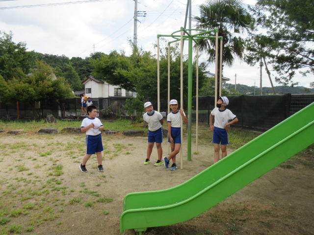 8月31日(月)の大休憩の校庭の様子です。今日で8月が終わりです。それにあわせるかのようにずいぶん過ごしやすい気温となりました。大休憩、たいくさんの児童が外に出ていろいろな活動をしていました。