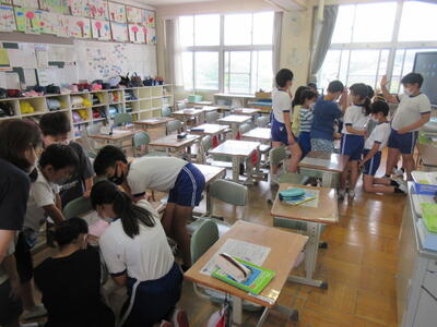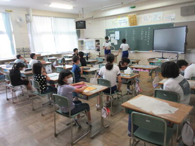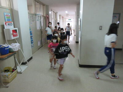 一学期末の集会ということで、集団登校の仕方についての反省や夏休みの約束について話し合いました。