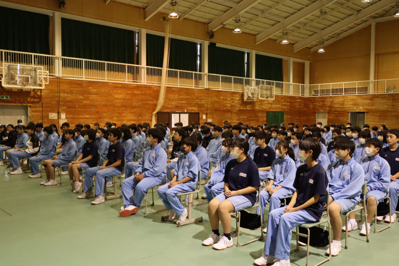 今日は来年4月に実施する修学旅行の説明会が行われました。2年生の生徒と保護者の方に修学旅行の行程などを説明しました。