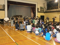 アンコール演奏で妖怪体操2を演奏すると児童みんなが元気にダンスをして楽しみました。