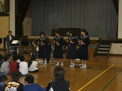 今回の演奏は、3年生が引退していますので、1,2年生11人での演奏で、発表は初めてでしたが、いろいろ工夫した内容で、小学区生はもとより保護者の方たちも大いに楽しませました。