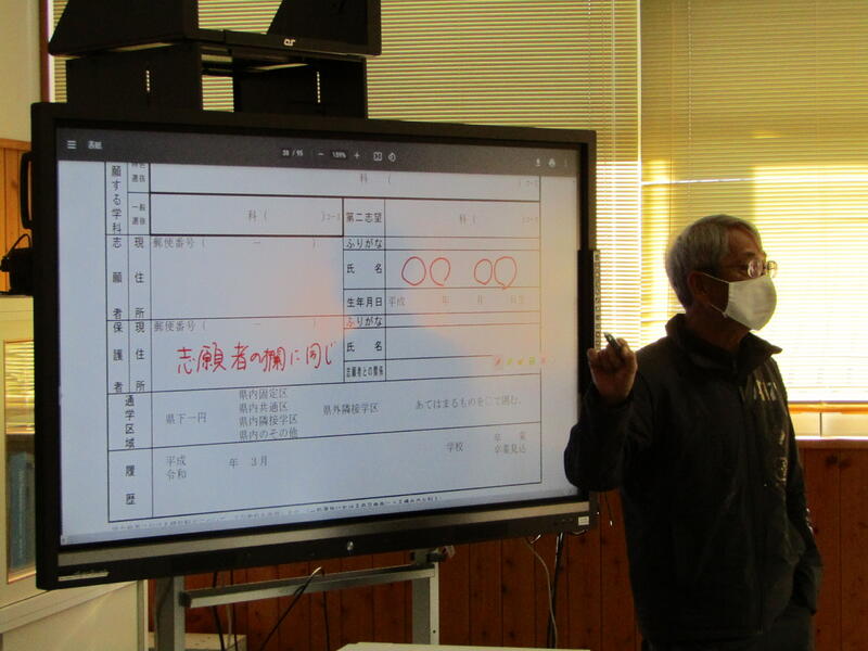 来年度の入試に備え、意識を高めるため、願書を書く練習をしています。