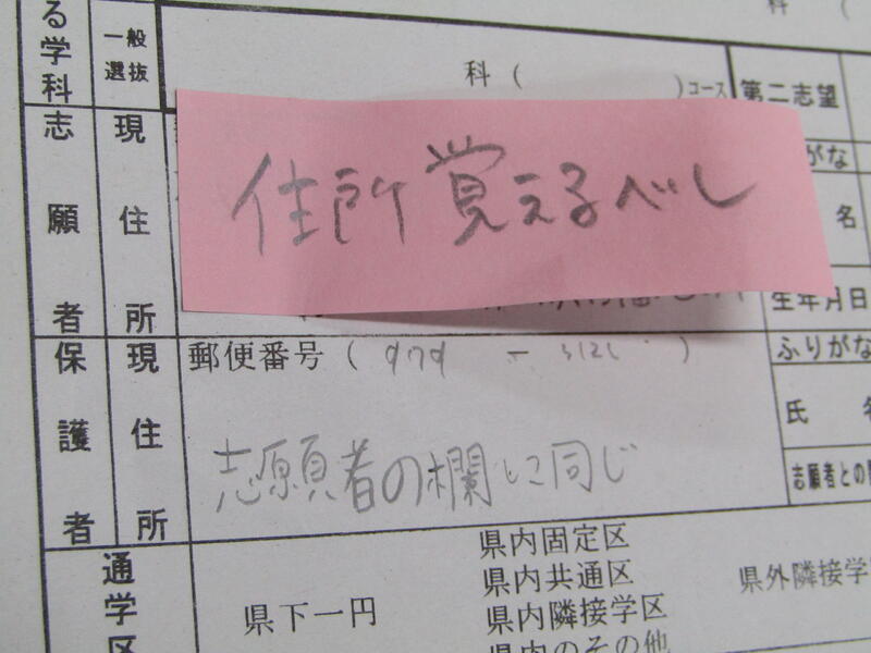 自宅の住所が書けない、保護者の方の名前を漢字で書けないなんて人も・・・覚えましょう!!