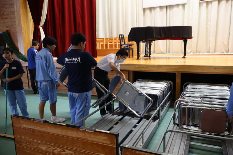 2024年10月31日 10時48分明日11月1日(金)は小川中の文化祭「夏井祭」が行われます。今日は明日に向けての会場準備や校舎内外の清掃を全校生徒で行いました。生徒たちが一生懸命に活動してくれたおかげで予定通り会場作成は終了しました。