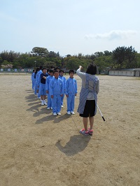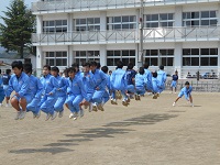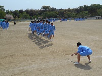 家庭訪問による短縮授業のために午後から各学級で長縄跳びの練習を行っています。