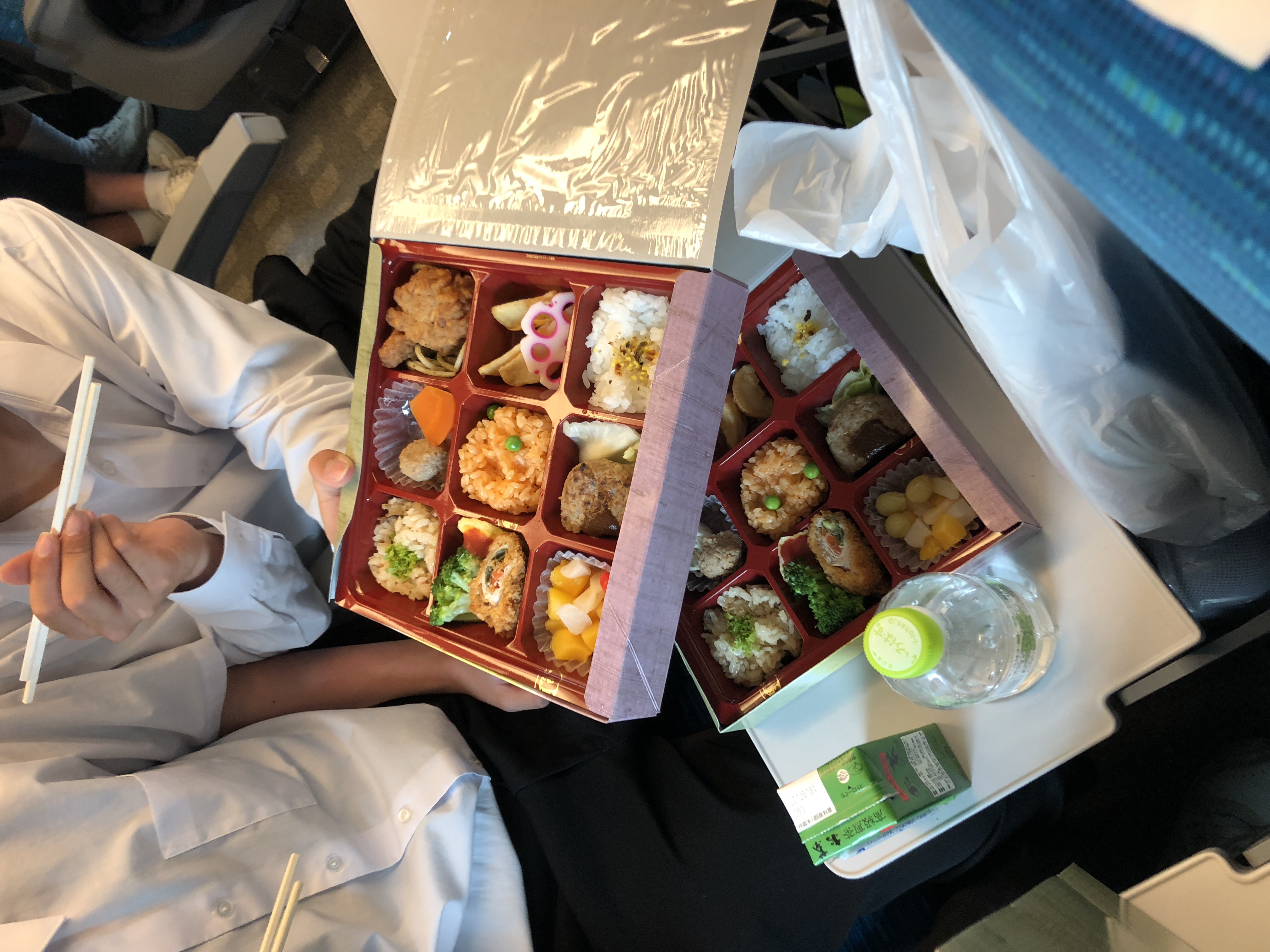 車内でお弁当の時間です。