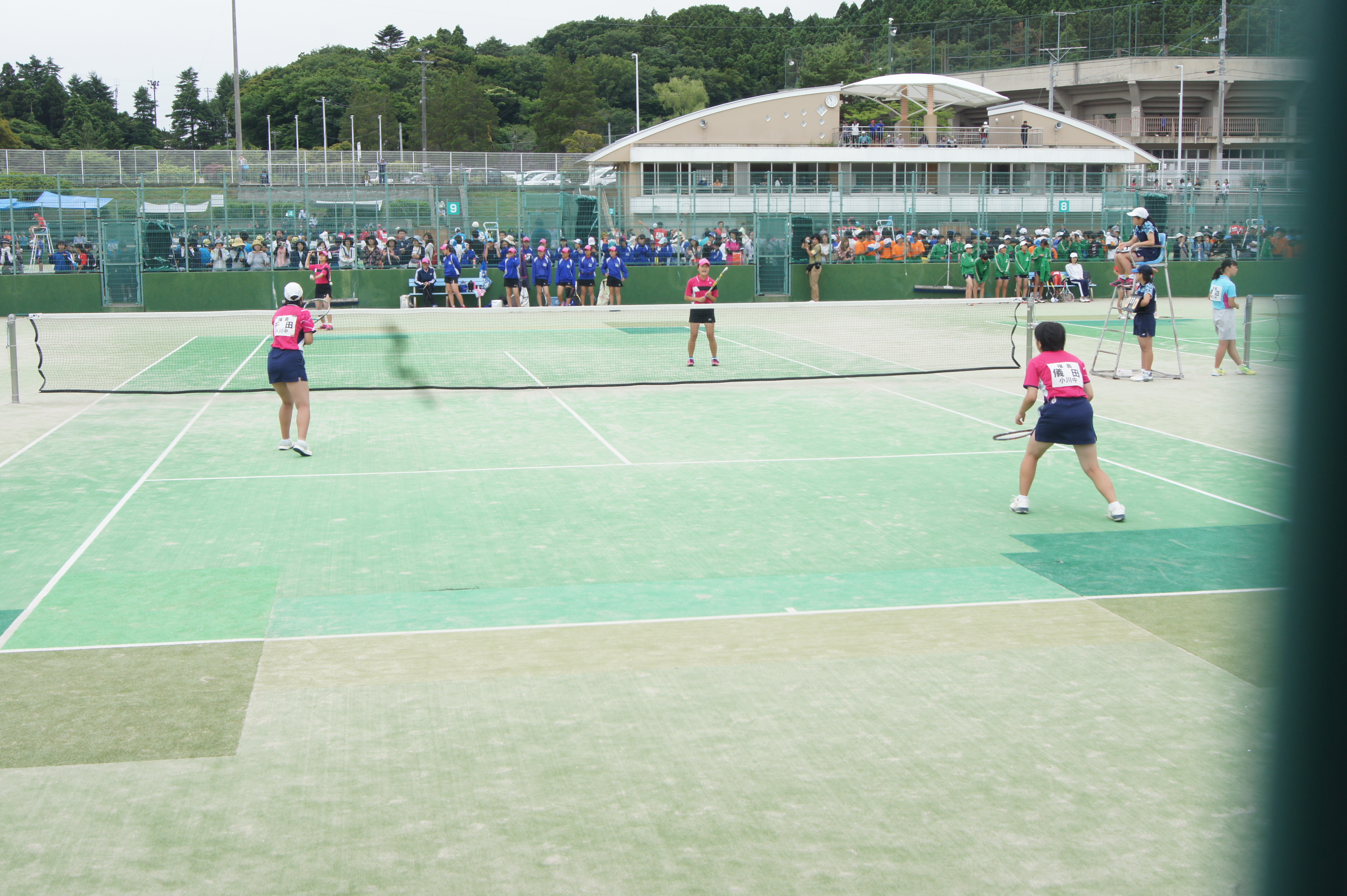 ソフトテニスは平テニスコートで、小名浜二中と戦いました。