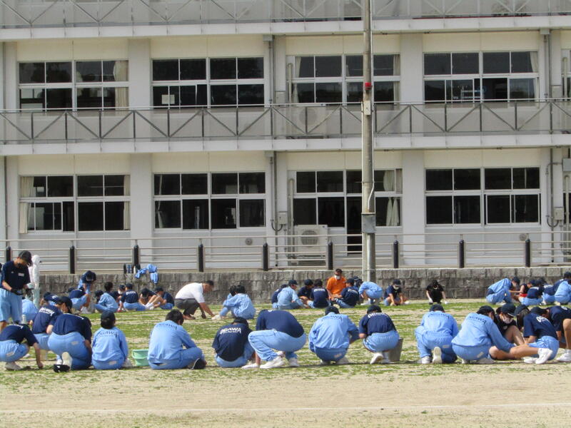 先日、本校では、「いわきのまちをきれいにする市民総ぐるみ運動」に合わせて、「クリーン作戦」を全校生徒で行いました。主に、校庭の草むしりをしました。