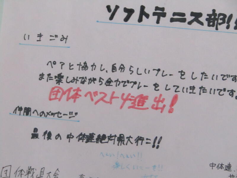 明日からいよいよソフトテニス部の中体連大会が始まります。