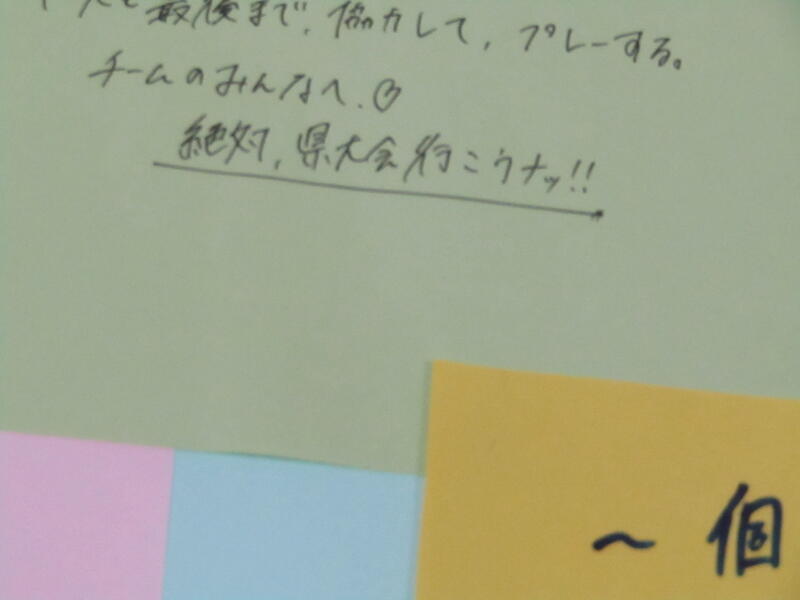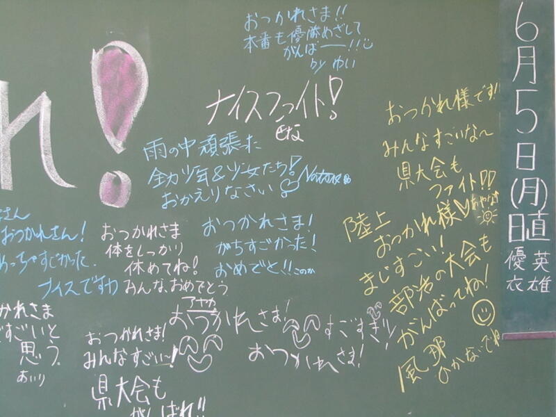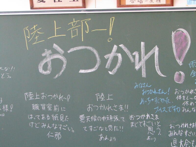 金曜日まで大会だった特設陸上部の人たちへ向けたメッセージでした。
