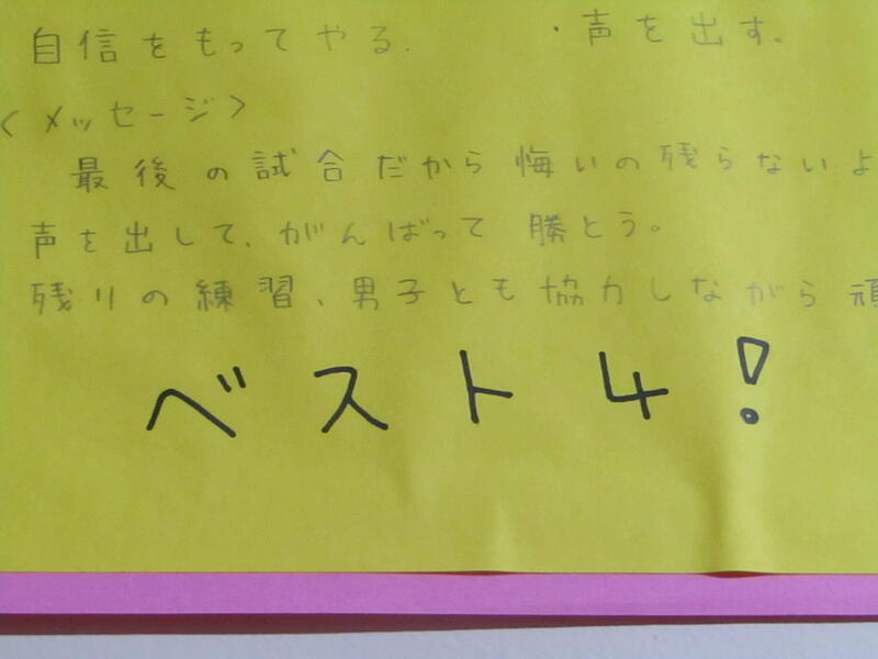 いよいよ試合です。自分を信じ、ペアを信じ、チームを信じて戦いましょう。そして自分たちの力をすべてコートに置いてきましょう。