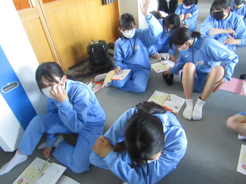 1年1・2組はスクールカウンセラーと養護教諭による「ソーシャルスキルトレーニング」の授業が。