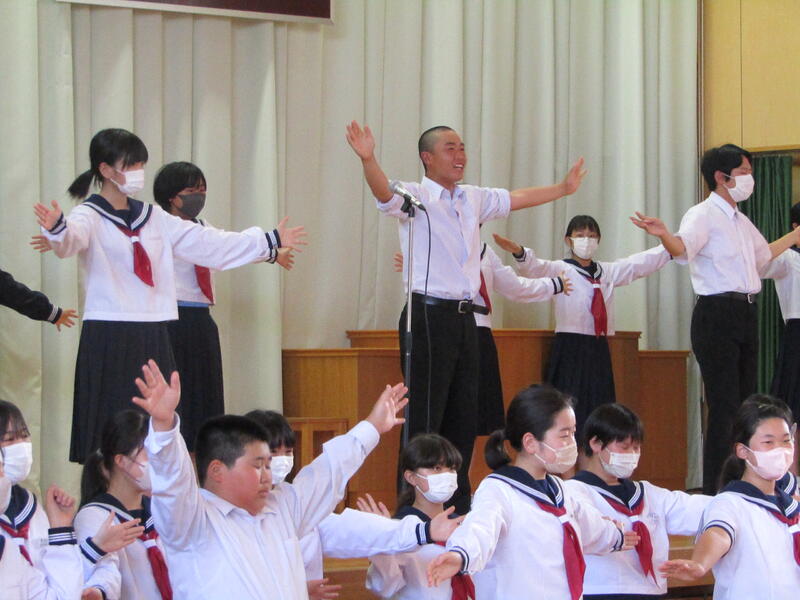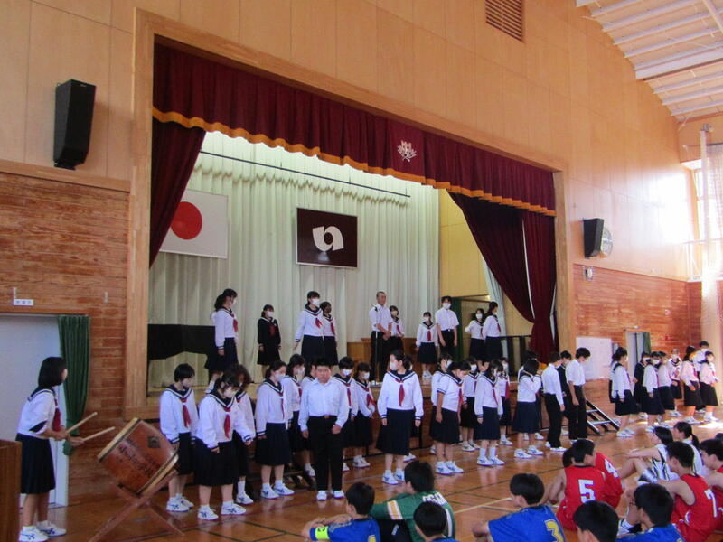 小川中大応援団からはエールでの激励と応援団長からは、最後の中体連を笑顔で頑張ってほしいというメッセージがありました。