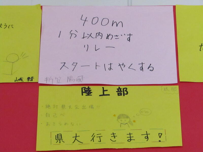 この他、すべての種目で自己ベストの更新がありました。頑張ったすべての選手に拍手を送ります。感動しました。ありがとうございました。