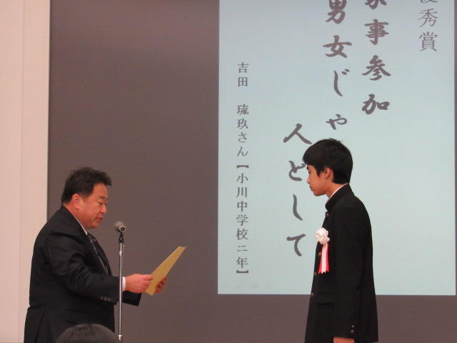 「男女共同参画の日」事業として行われた男女共同参画に関する川柳の表彰式行われました。