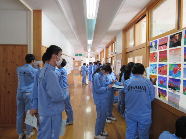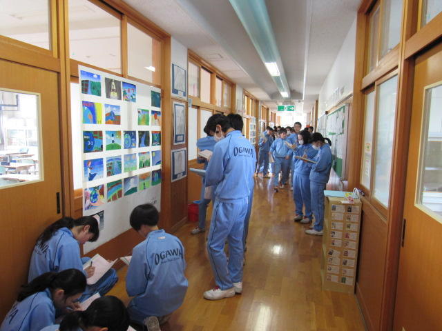 昨日の月曜日の昼休みから、生徒たちが授業で作成した美術作品の