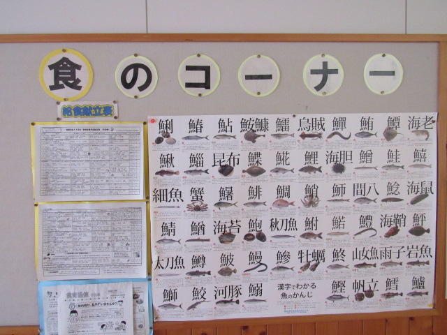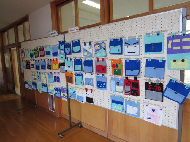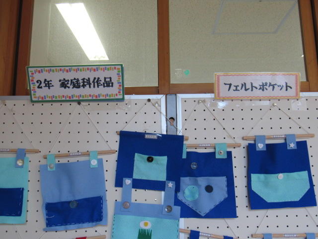 家庭科室の廊下には、2年生の家庭科で作成した作品が展示されています。