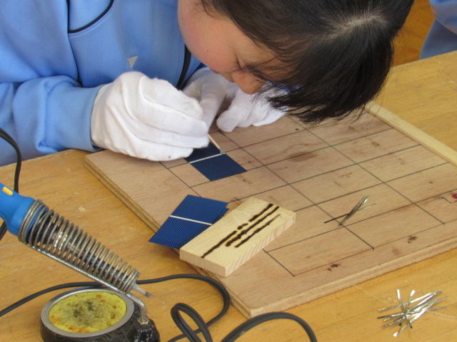 ②ソーラーパネルを作成すること(完成したパネルは発展途上国へ送られる)