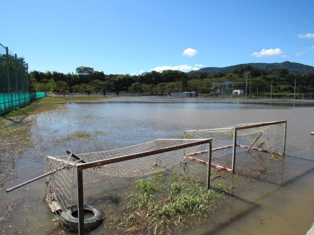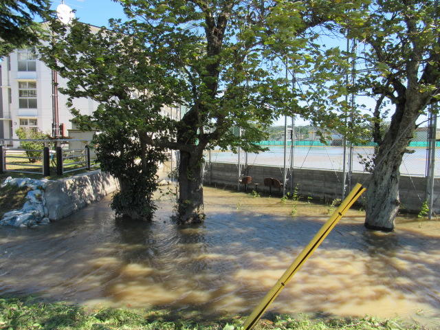 学校の被害状況ですが、校庭が冠水(最大で1.2m)し、