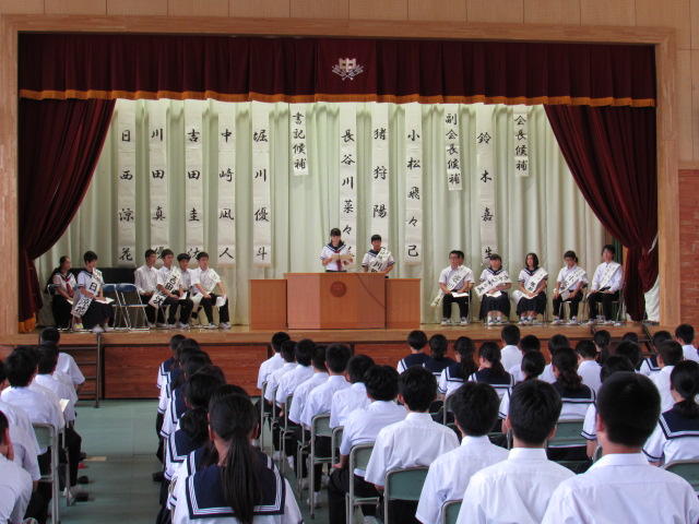 生徒たちは、責任者・候補者の話にしっかりと耳を傾けていました。