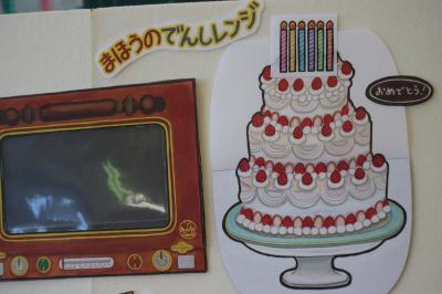 学校司書の吉田先生が、1年生にパネルシアターによる「読み聞かせ」をしてくださいました。食べたいごちそうをお願いし、お皿を電子レンジに入れ魔法の歌を歌うと・・・。