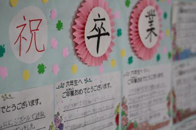 1年間使った自分たちの教室や校舎を、次の学年のために一生懸命にお掃除をしてくれました。1年生は、6年生にお掃除をお手伝いしてもらうのも今日が最後です。