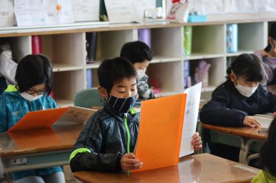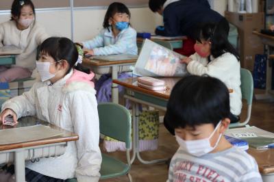 式終了後は、各学級で先生から「あゆみ」や賞状等を一人一人渡してもらい、最後の学級活動を行いました。