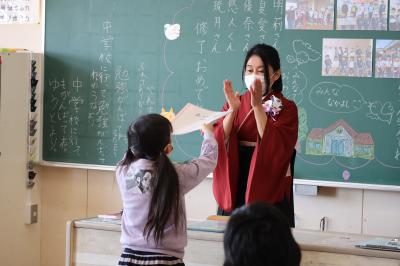 校長式辞の中で、春休み中も「夢・パワー・チャレンジ」の合言葉を忘れず、新しい学年で何ができるようになりたいか、どんな自分になりたいかを考え、準備となる休みとなるようにと話をしました。春休み中も感染症予防をしっかりと行い、4月6日に、また元気に登校してくださいね。