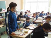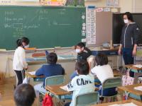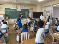 3年生では、ケビン先生から英語の質問を受けていました。どの子もケビン先生の発音を真剣に聞いていました。その後、3年生からもケビン先生にたくさん質問をしていました。