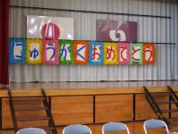 体育館に入ると、1年生へのメッセージボードやきれいな飾り付けがされていました。