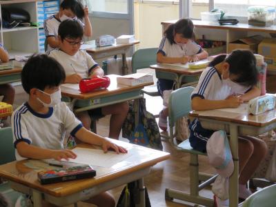6月から3月まで、大浦小では木曜日の朝の学習タイムに「漢字大会」「計算大会」が隔週で行われています。