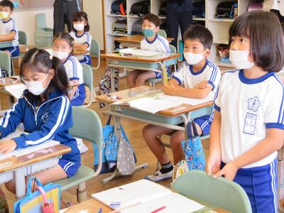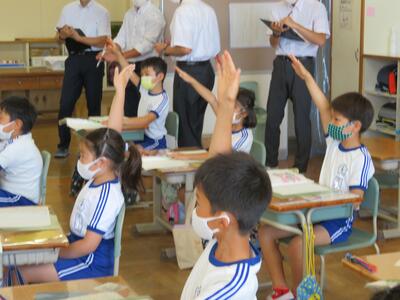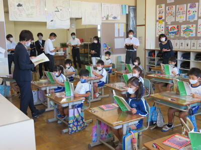 たくさんの先生に囲まれて、児童たちは少し緊張気味・・・(先生も?)