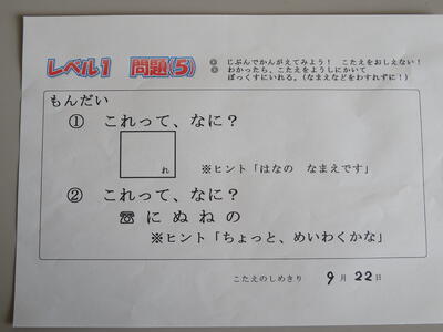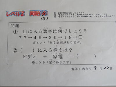 今回の問題は、次の通りです。(お家の方もわかりましたら、お子さんにヒントだけ教えてあげてください。)