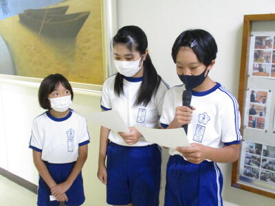 校長先生の話の後、今回は環境委員会の活動発表がありました。