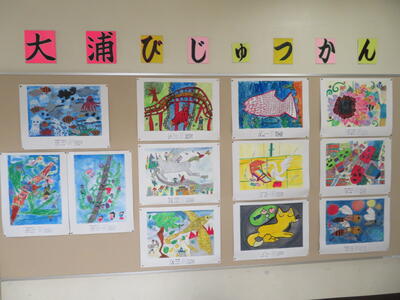 三階東側の廊下壁面には、「大浦びじゅつかん」が掲示されています。