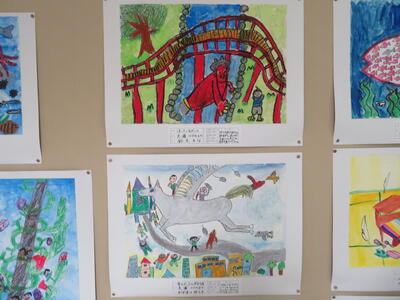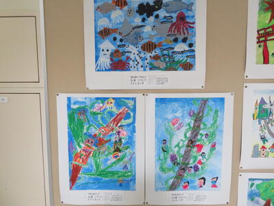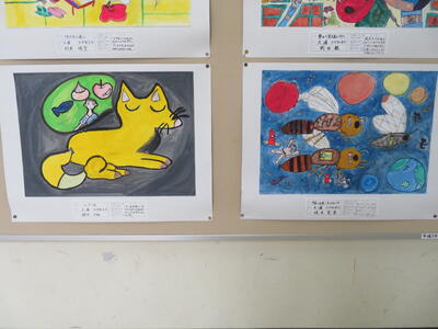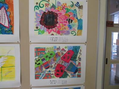 どの作品も力作です。良い作品が掲示されていると、児童の情緒育成にもつながりますね。