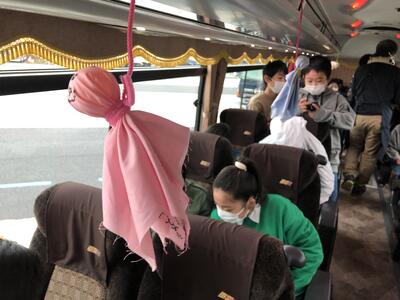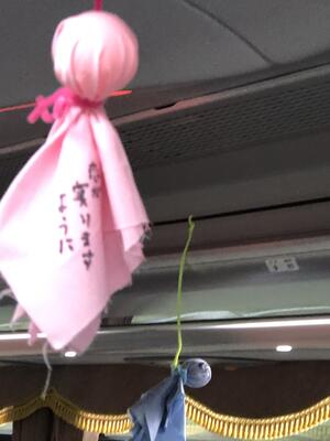 添乗員さんのはからいで、みんなでてるてる坊主を作りました。