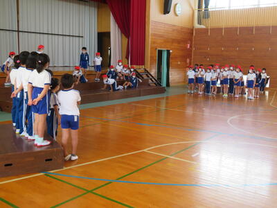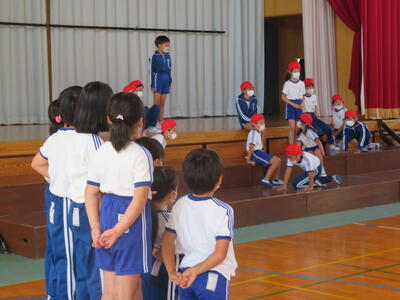 三連休が明けて、29日の学習発表会に向けて、各学年ごとに体育館での練習が始まりました。