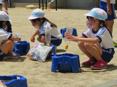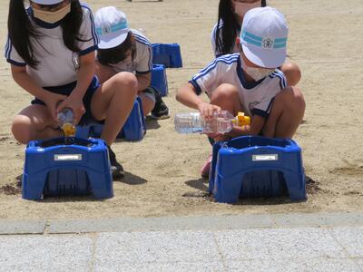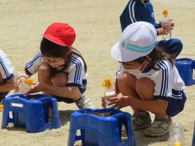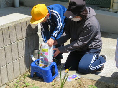 5月24日 五月晴れのいい天気の下、外での学習の様子をお知らせします。