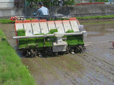 田植え機にはGPS機能がついているそうです。(ハイテクですねー。)