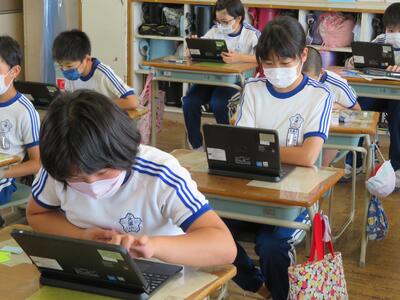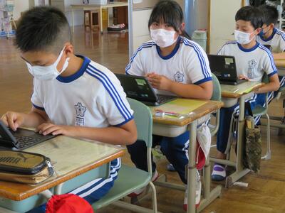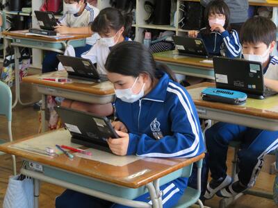 5月30日 5年生がタブレットを使って、プログラミングの学習をしていました。