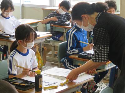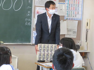 経験豊かな先生には、書写だけではなく、いろいろなことを児童たちにお話しいただいています。