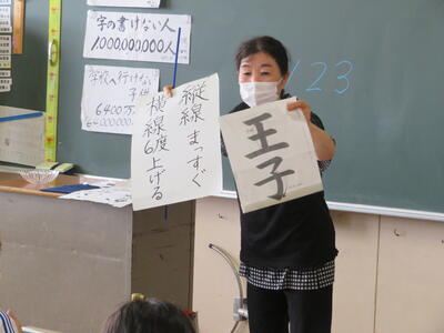 先生には、長年、大浦小児童に書写を教えていただいています。
